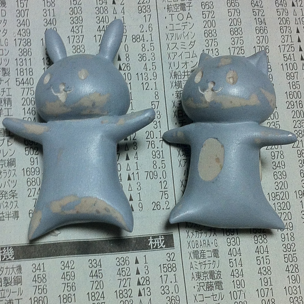 ということで、また溶きパテを塗りつつ磨きつつ修正します。目の間隔と大きさを誤ると途端に編な顔になるのでシンプルなキャラクターは難しいです。