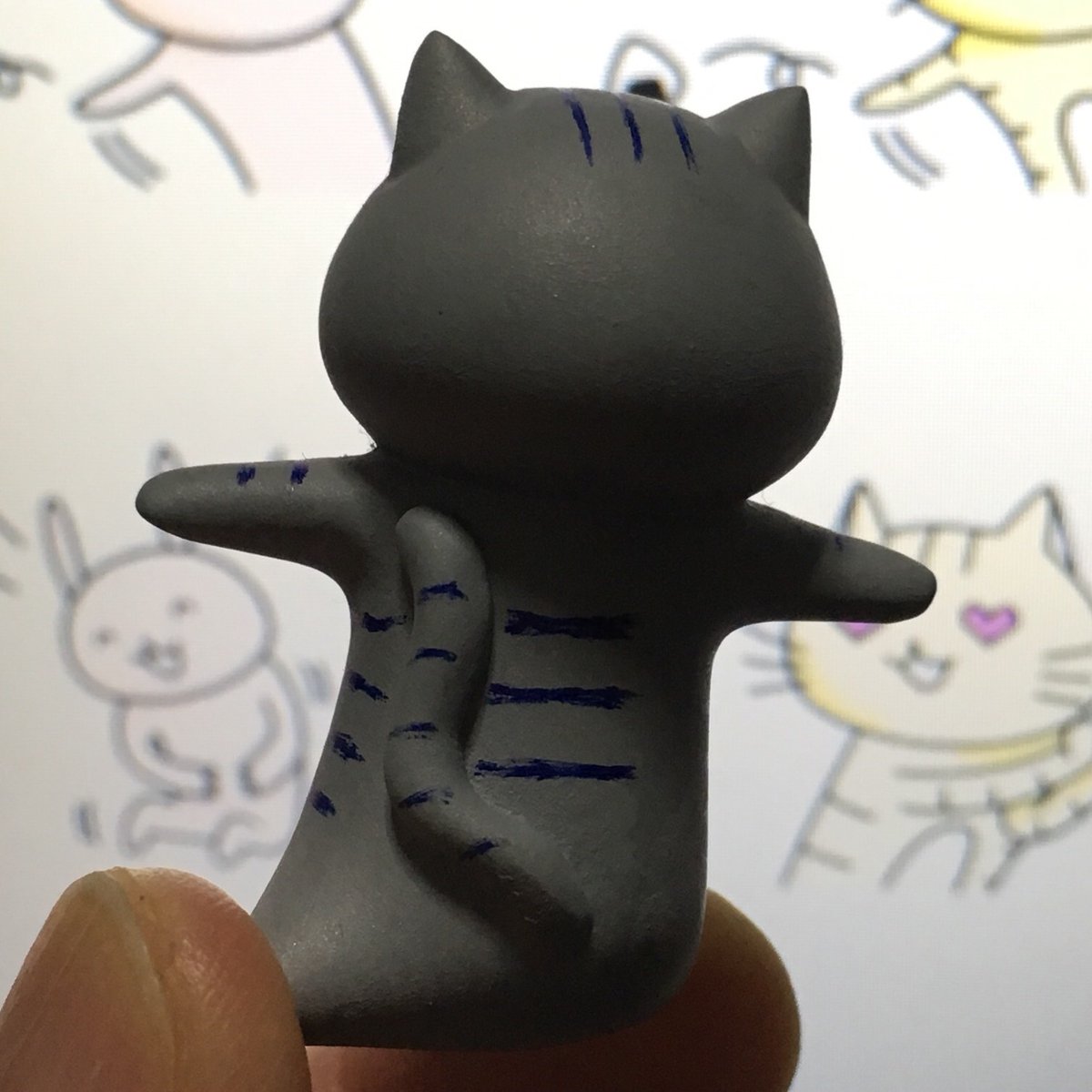 LINEスタンプをもとにねこ男の体の模様を検討。大体決まったらスジ彫りをします。