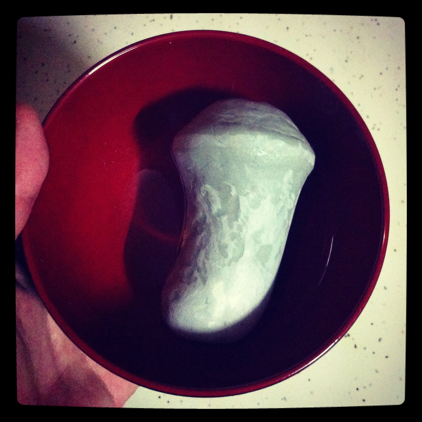 ダイソーに行ったらちょうどいい感じのゴツゴツしたお椀があったので、ふと思い立ってライフスケールで作ることに。手順はいつものとおりアルミホイルを芯にエポキシパテを盛って整形です。まだ整形の前段階の荒削りな状態ですが。