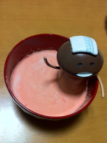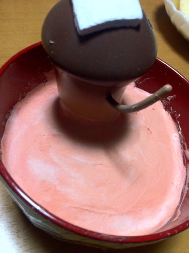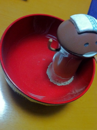 こんな感じ。作業でちょっとお椀となめこが汚れてしまったので、完全に紙粘土が完成した後にちゃんとクリーニングします。でもこの段階でなんとな〜く味噌汁っぽい感じになってきたような気がしないでもなく。