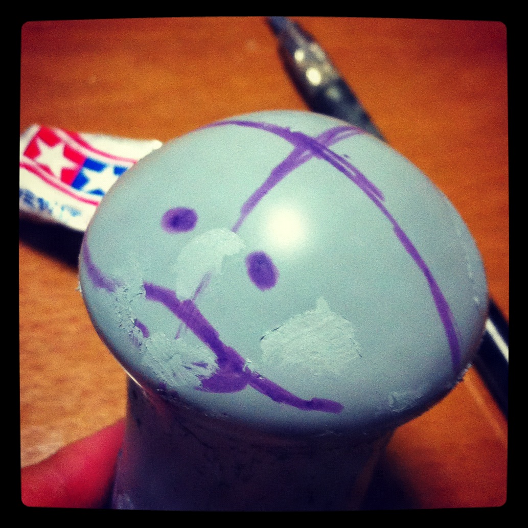 ラッカーパテを荷物の奥底より発掘!ということで細かい傷・凹みを消す作業に入りました。とは言ってもサフ吹き→パテ盛りを2、3回繰り返せば完了しそうな感じです。しかしやはりサンドペーパーで磨くと形の歪みが如実に分かりますね。明日中には表面処理を完了させて顔を彫るところまで進めたいです。