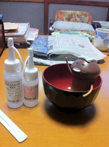 その後進学のため上京しありとあらゆる透明樹脂を使用しましたが、これほど透明度が高く、且つ使いやすい素材はないと今でも思っています。硬化までの時間が長いのが難点ですが、それも気泡を少しでも除くためと考えればまあ許容範囲です。