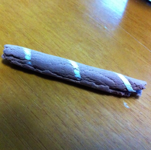 で、できた棒状クッキーと手足をエポキシ接着剤で接着!クッキーなめこの本体完成!