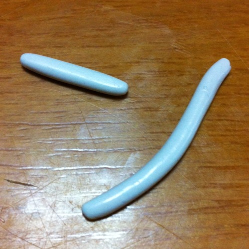 伸ばしてなめこの手足を作ります。しかもこれ、硬化後の色もちょうどなめこの素肌(?)っぽいんですよね。色的には木工パテでもいいかもしれませんが、強度のことを考えると木工パテではちょっと脆そうで心配です。