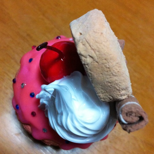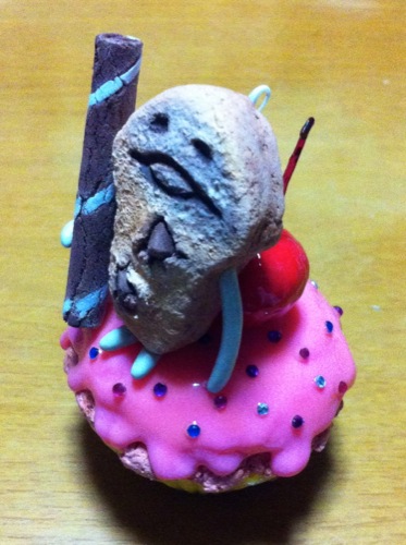 なめこにクッキーっぽい仕上げ塗装をして完成!着想から完成までわずか2日という超特急作業でした。フィギュア製作の最短記録です。まあフィギュアというよりスイーツデコ製作ですが。ちゃんとした作品写真は明日以降改めて撮影します。