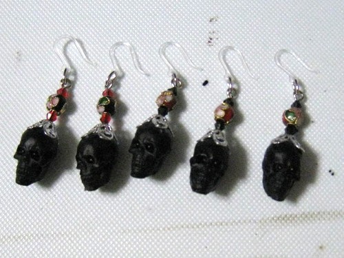 七宝焼きのビーズと透かし金具を組み合わせてみた髑髏ピアス。