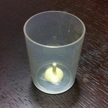 これはもともとあった白目部分のシリコン型です。底に空いた穴に