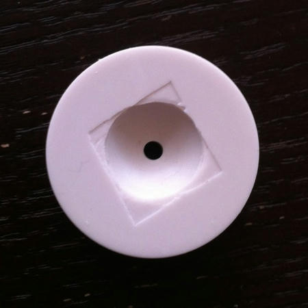 完全硬化した後に型から外すとこんな感じになります。つまり、穴にパーツをセットしたことにより瞳と虹彩が正確に中心にセットされるというわけです。