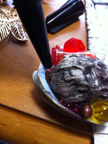 以前キャストで複製したカメオ台を使って試しに作ってみました。モチーフと質感が合わせられるのが良いかも。