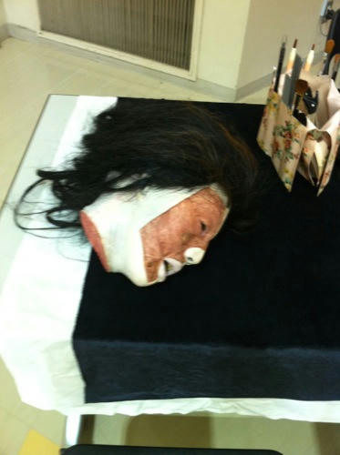 今日来てくれたお客さんは、午前中2時間で7人、昼休憩一時間を挟んで午後2時間で8人と合計15人でした。計算するとだいたい15分に1人のペースでメイクしていたということ。秋田県で、それも初の試みでこのペースは結構良い感じではないかと思います。レイテックス・アプライエンスも用意していきましたが、終了時に残っていたのはこれだけ。看板にある人面疽が一番早く無くなってしまいました。