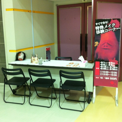 最後だからお客さんいないかな…と思いましたが、むしろ最終日だからこそ”見納め”という感じで多くの動員があり、その分特殊メイクコーナーにもたくさんの方々が立ち寄って下さいました。その結果最終日にしてお客さん総数35人!前日までの動員と合わせて、期間中計
