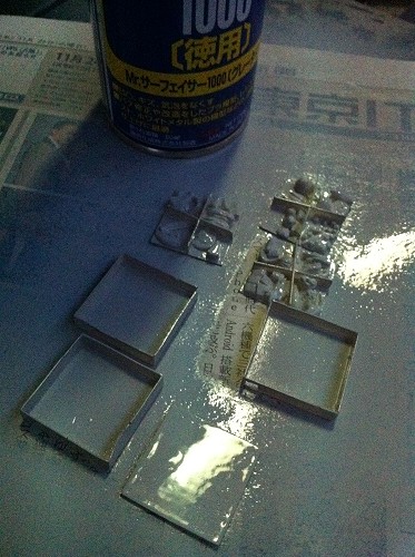 とりあえずガレージキット製作の第一段階ということでサーフェイサーを吹きました。でも細かい造型が潰れないよう最初から目の細かい1000番のサーフェイサーを使用。これから気泡を消しつつ表面処理をしていきます。
