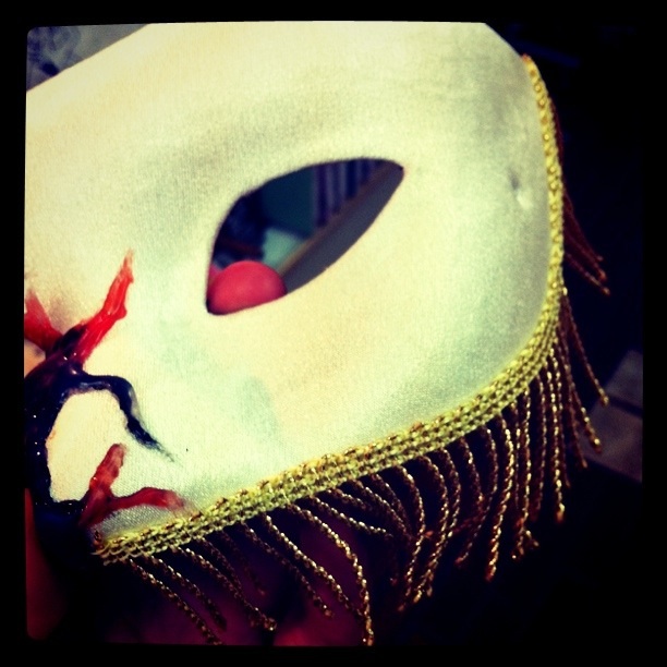 デコパーツでデコります。仮面の装飾はこんなもんで。あとは仮面の片側のドロドロに塗装するだけです。
