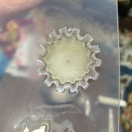 一週間前に鍵穴と歯車のポリカーボネイト型に詰め込んだ透明粘土「すけるくん」のその後の様子です。