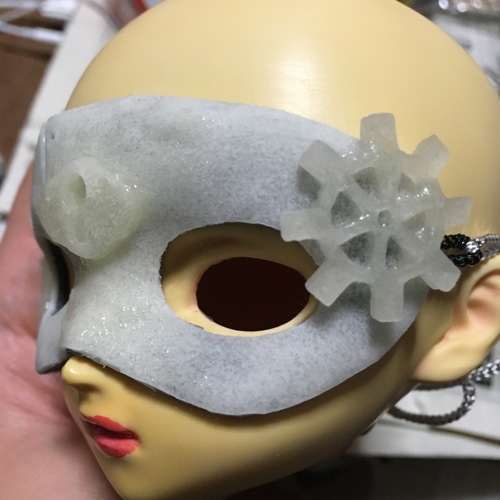 新たなドール用仮面の土台です。切り込みが入っているのは”敢えて”です。扉がちょっと開いているイメージですね。