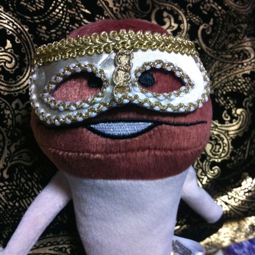スーパードルフィーの女の子ヘッドに合いそうな大型サイズのドール用仮面の新作を作ったんですが、これがもう面白いくらいに「レアなめこぬいぐるみ」にピッタリなんですよ。