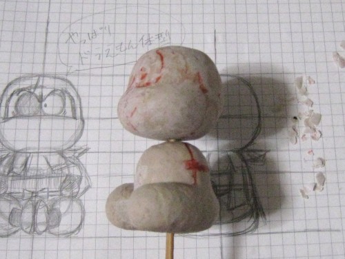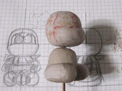 それから、アートナイフ(デザインナイフ)の刃を新品に替えて、サンドペーパーで磨く前段階までとにかく削って削って形を出す。