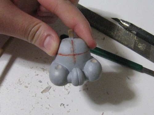さて、ここで胴体部分の鎧の彫刻と行きたいところなのですが、