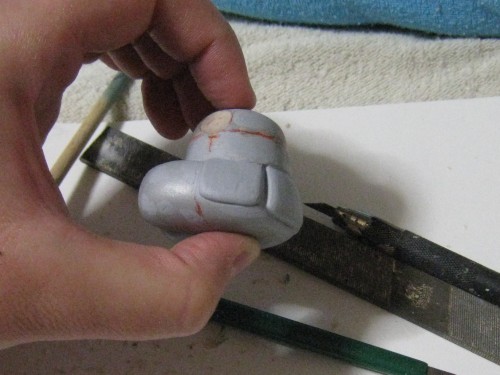 同じ色味で見たいので一度溶きパテを塗ってみる。