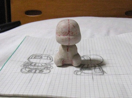 それから、アートナイフ(デザインナイフ)の刃を新品に替えて、サンドペーパーで磨く前段階までとにかく削って削って形を出す。