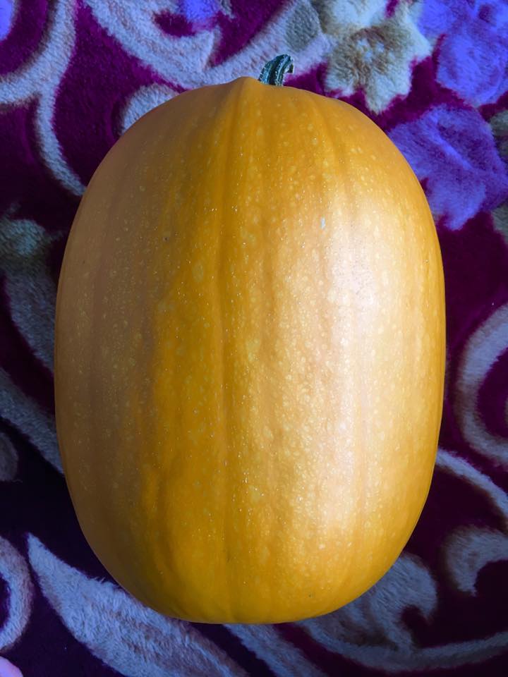 ハロウィンパンプキンを栽培していると、毎年必ず1個”先祖返り”した実が生ります。カボチャは他の農作物と交雑しやすい植物で、厳密に管理しないとすぐに周辺で栽培されている他の野菜や果物の花粉が雌花に付着してそのDNA情報を取り込んでしまい、妙ちくりんな形の実になってしまいます。まあその性質のおかげで多種多様な品種が生まれたのでしょうが。ところが、どんなに交雑を重ねた種でも、こんな感じに元々のカボチャの姿のまま生る実が出てきます。