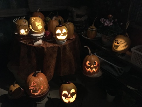 やはりカボチャランタンはたくさん彫って一気にロウソクを点けた方が華やかで絵になりますね。今年のノウハウを踏まえて来年はもっとグレードの高いカボチャランタンを彫ろうと思います。ということで皆様Happy Halloween!!