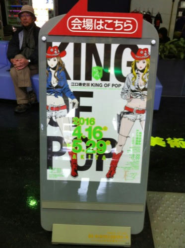 漫画家・江口寿史(えぐちひさし)先生は、1977年に週刊少年ジャンプにて「恐るべき子どもたち」でデビューし、続いて同誌に「すすめ!!パイレーツ」を連載。連載3作目となる「ストップ!!ひばりくん!」はTVアニメ化もされるなど大ヒットを飛ばし江口先生の代表作となります。とは言え、今回の展覧会「KING OF POP」では先生がイラストレーターとして手がけられた作品の展示が多く、これまでまんが美術館にて開催された原画展とは異なり、「漫画の生原稿をじっくり見る」というよりも、絵画鑑賞に近い雰囲気でした。ちなみにこの展覧会は2015年に刊行された江口先生の集大成画集「KING OF POP 江口寿史 全イラストレーション集」(玄光社)に合わせたもので、昨年より全国を巡回しているとのこと。これまでの開催地が、福岡県・北九州市漫画ミュージアム、神奈川県・川崎市市民ミュージアム、東京・お茶の水の明治大学・米沢嘉博記念図書館など。それがよくもまあこんな田んぼのど真ん中で最寄り駅も無いクソ田舎の施設に来たもんだと心底驚きました。それで入場料500円、学生に至っては300円ですからね。