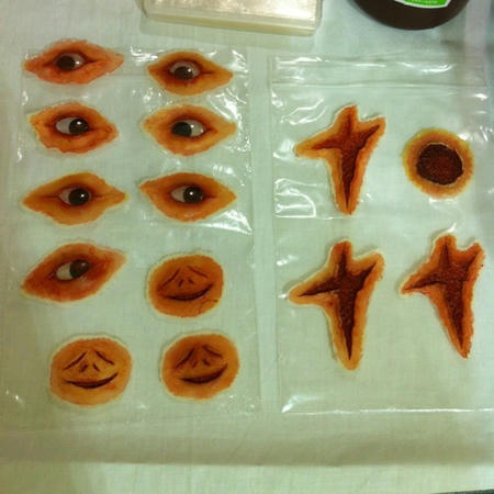 予想外に秋田ふるさと村の特殊メイク体験コーナーが好評のため、前の夜から明け方にかけて大急ぎでスリップラバーアプライエンスを増産しました。とりあえず10人分できたので少しは余裕が出るかな…と思ったのですが
