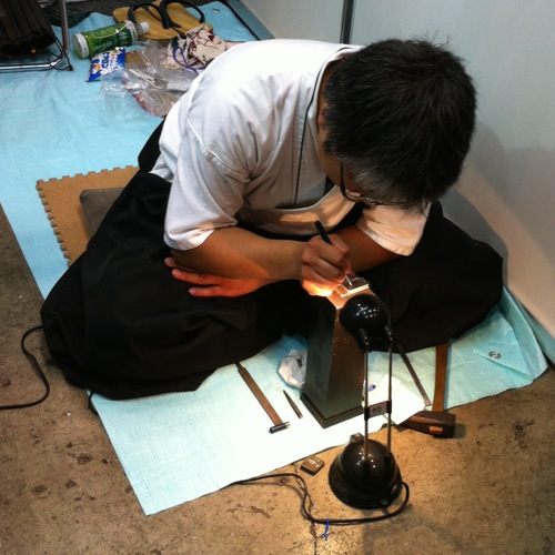 刀匠の方が名前を彫ってくれるサービス。刀剣乱舞特需の影響でしょうか。というか場内は早くも刀剣乱舞の版権フィギュアてんこ盛り状態でした。2月にサービスを開始して今7月だから、版権申請の期間も考えると、ディーラーの皆さんは2ヶ月程度で原型を完成させたことに…凄い!
