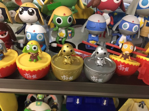す ご いこんなにケロロ軍曹のグッズばかり密集している光景、東京にいた頃でさえ見たことがありません。というかすき屋のオマケがフルコンプされているのがもう凄い。こりゃとんでもないお宝が地元にあったもんです。この大きいタママのぬいぐるみが超かわいい!
