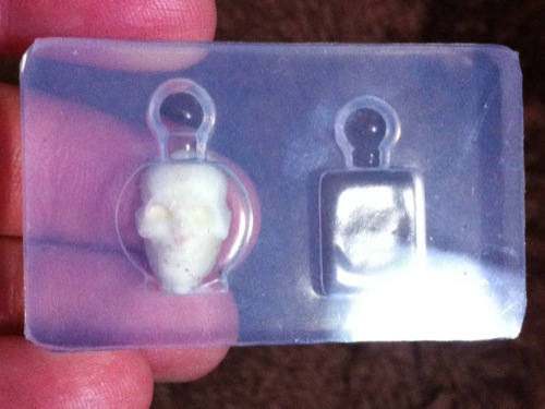 またミニドクロを複製して封入し、こんな不吉極まりない香水瓶パーツを作っていろいろ加工しようと思っています。