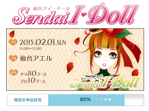 80%ですよ。I・Dollのスペースが全部埋まらないってどうよ。仙台にはドールオーナーの方やドール系のクリエイターが少ないんでしょうか?でも一応ボークスの「天使のすみか」などのドール専門店は複数あるはずですが。