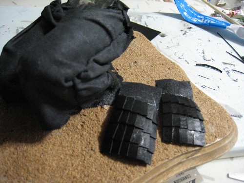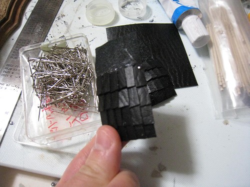 小札の材料になる革…テクスチャばかりは縮小化できない…でも塗装次第でなんとかなるか。