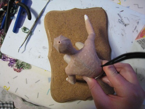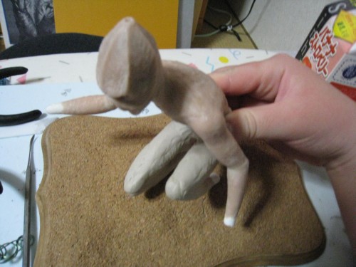 ところで上記写真をご覧のとおり、この時点で既に手で支えなくても自然に自立するようになってしまいました。適当に盛ったベース&適当に彫刻した足なのになんて良い偶然なんだろうかw