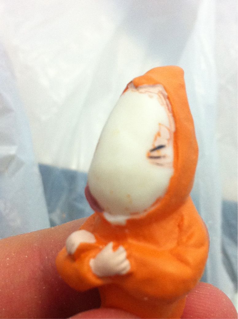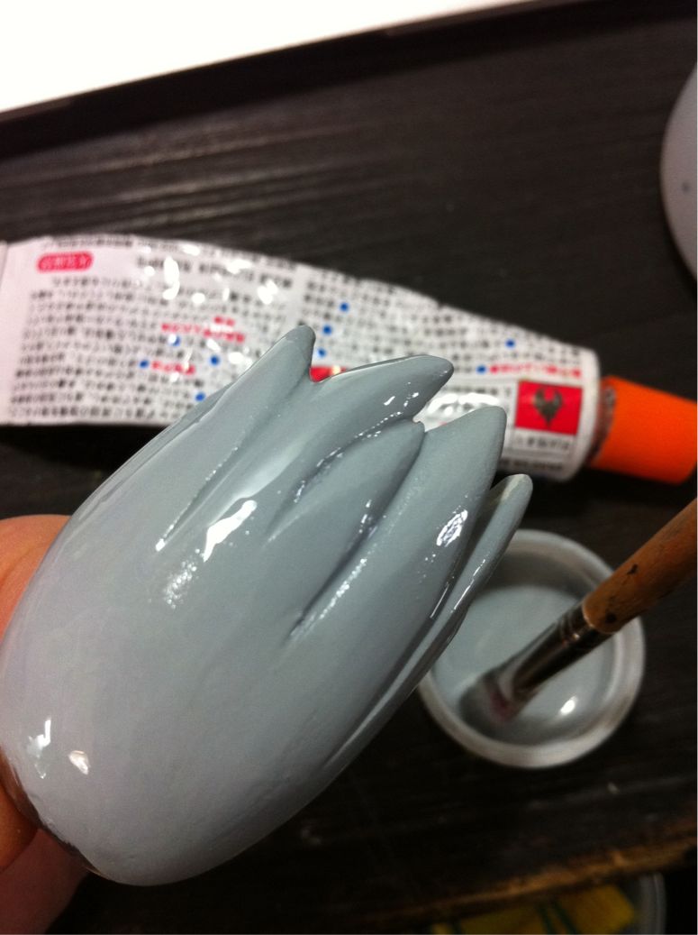 エポキシパテの硬化待ち中に顔の白塗りを進めます。
