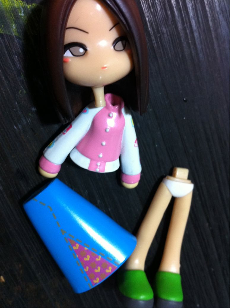 元のピンキーより後ろ髪を伸ばすため、髪の毛パーツを粗めのサンドペーパーで磨いて塗膜を落とします。
