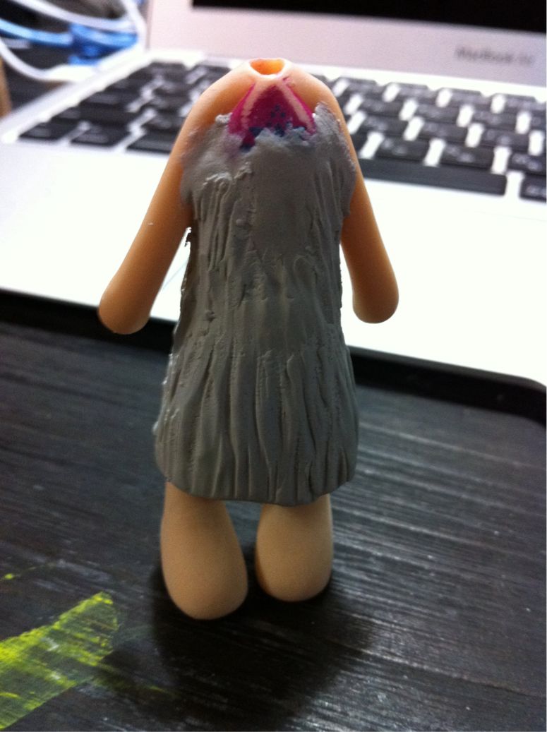 それの乾き待ち中に衣装の彫刻を進める。おそらく袖が長い定番Goth服的な衣装かと。