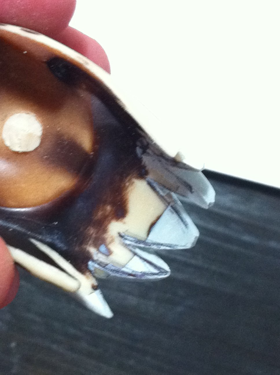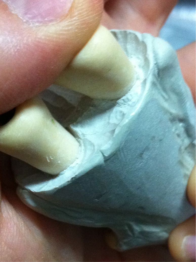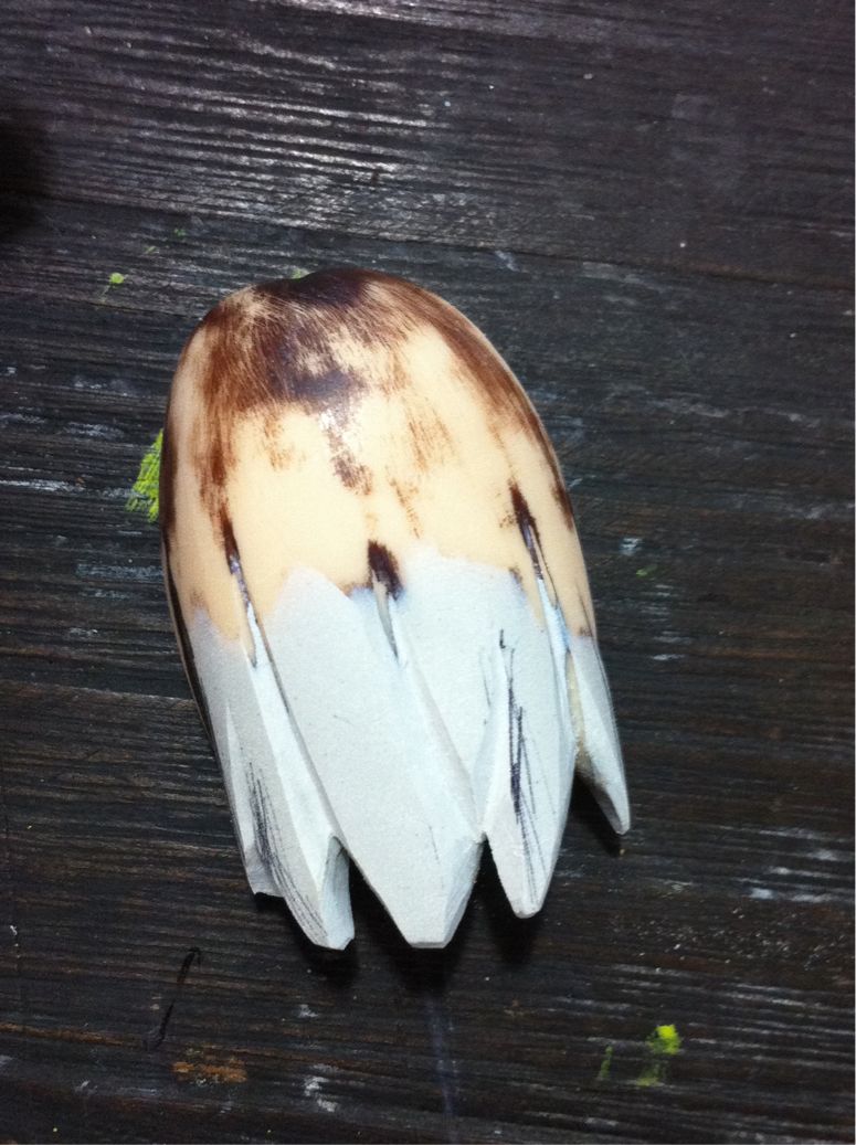 乾燥後、細かい目のサンドペーパー各種で磨き完全にパーティングラインを消し、さらにその上にディティールを加えます。