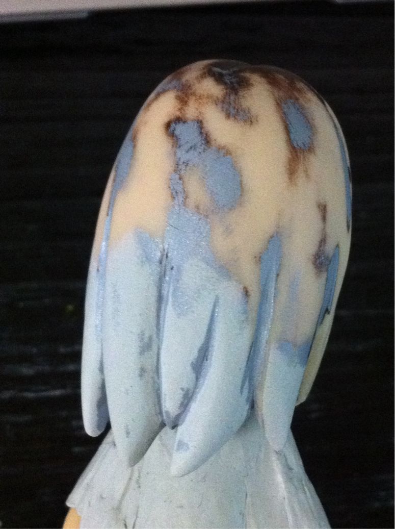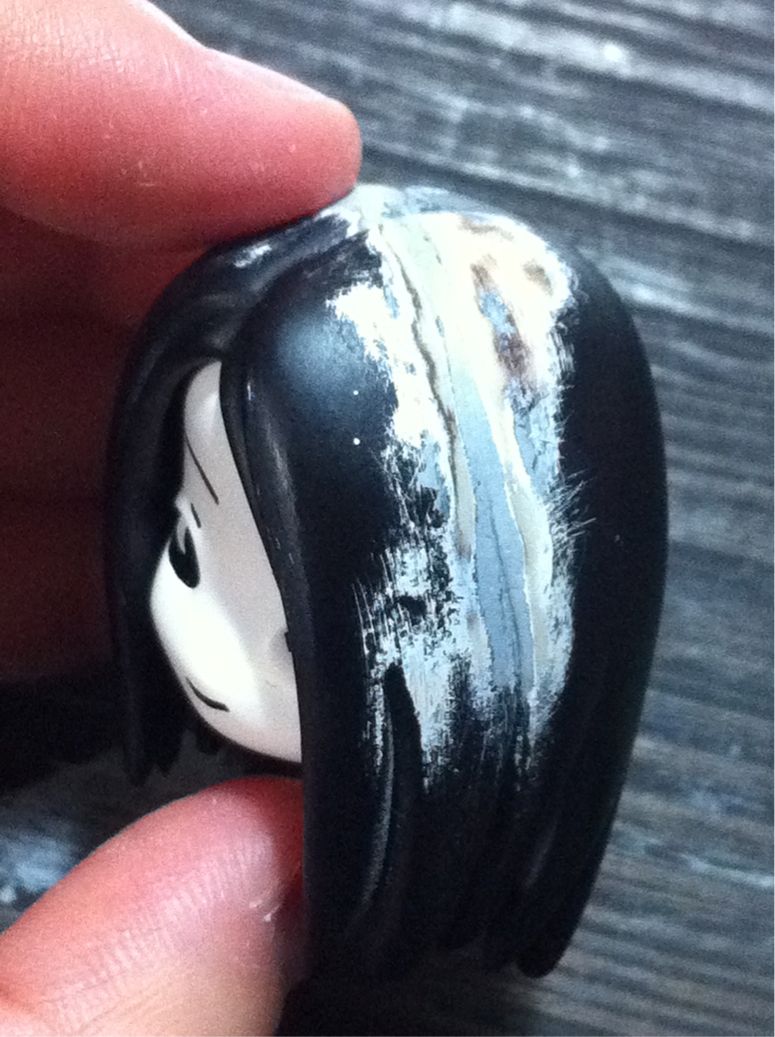 そして髪の毛の表面を塗装し直します。全体のメリハリを付けるためグロス仕上げにしました。衣装はマット仕上げにする予定です。