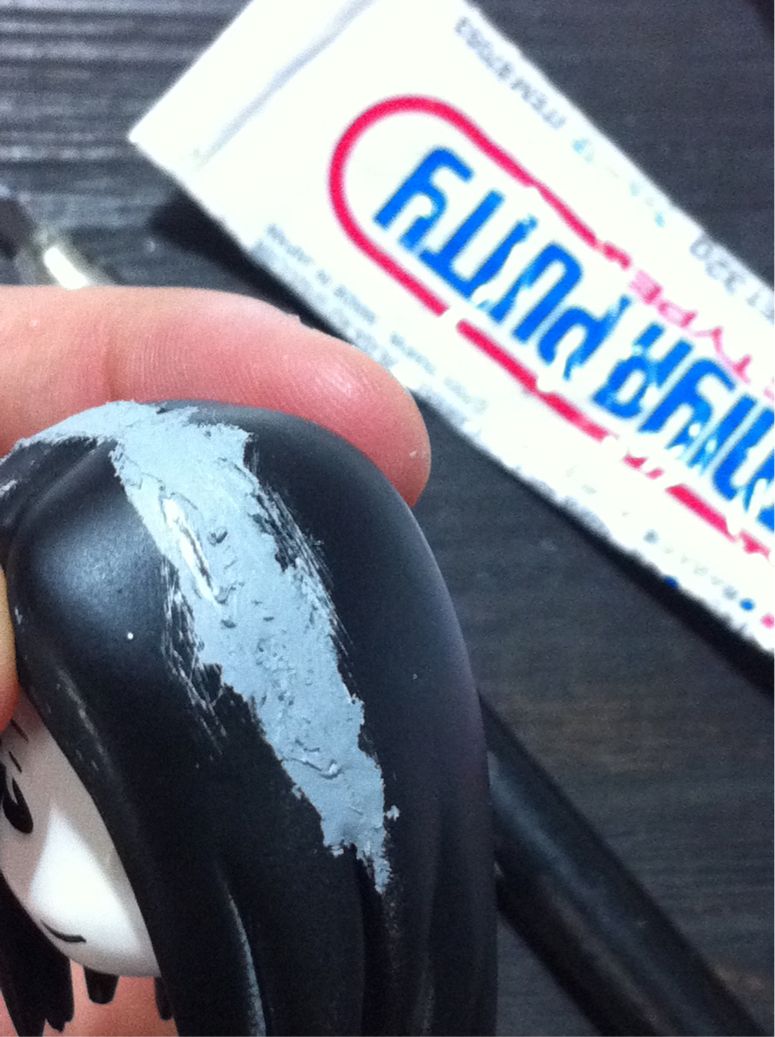 そこに金属用エポキシパテを盛ります。木工エポキシパテよりもこっちの方が食いつきが良いので。