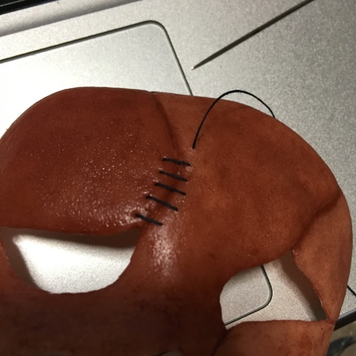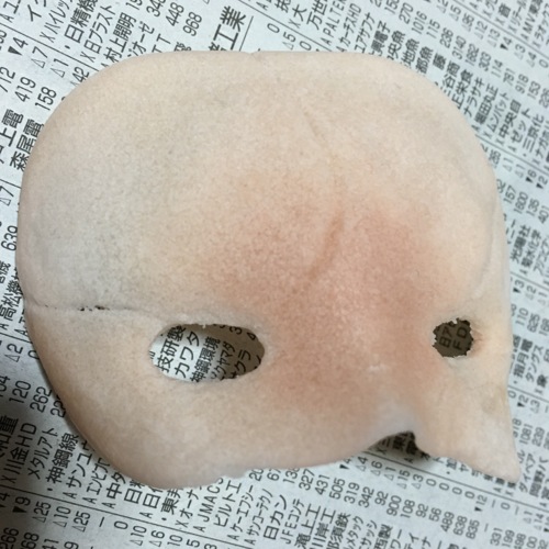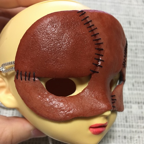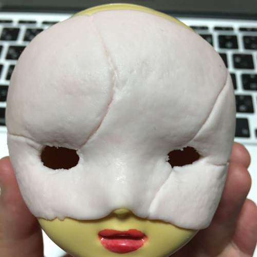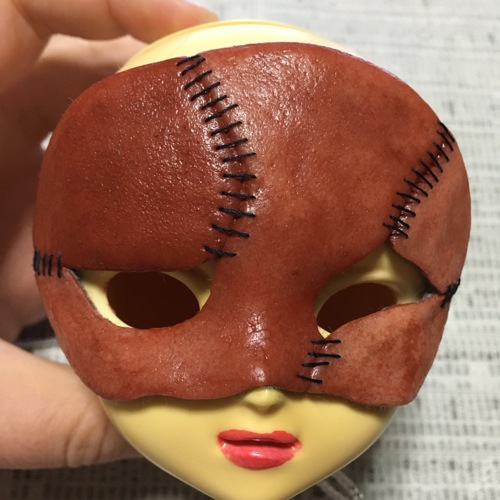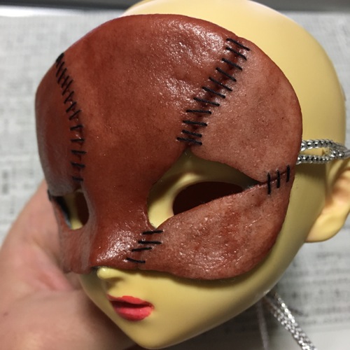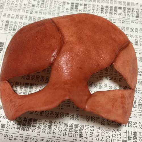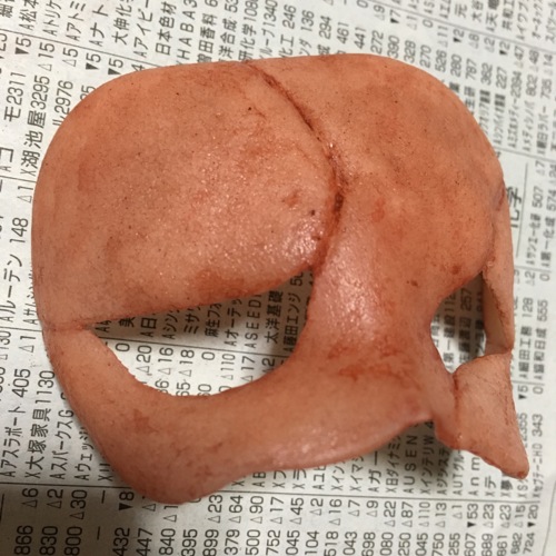 続いて昨日より作り始めた新たな仮面の作業に入ります。透明粘土「すけるくん」って完全乾燥すると桜餅の皮みたいな質感になります。粘土に直接内部着色したら楽にフェイク和風スイーツが作れるんじゃないでしょうか・