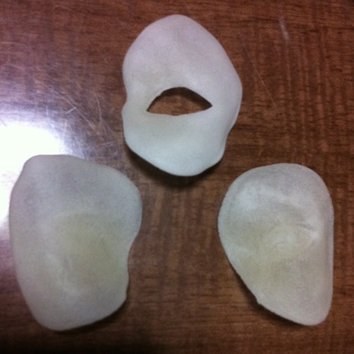 ただ「すけるくん」という名称のわりにはあまり透けませんw 上記の写真は作って3日放置した状態ですが、まだ白濁していて萎びれた餅みたいな質感になってます。まあ塗装次第で陶器のような感じにすることもできるので、とりあえずハーフマスク3個を実験的に作ってみたいと思います。