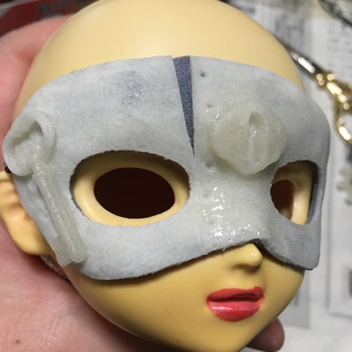 新たなドール用仮面の土台です。切り込みが入っているのは”敢えて”です。扉がちょっと開いているイメージですね。