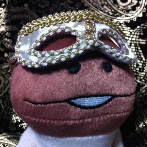 スーパードルフィーの女の子ヘッドに合いそうな大型サイズのドール用仮面の新作を作ったんですが、これがもう面白いくらいに「レアなめこぬいぐるみ」にピッタリなんですよ。
