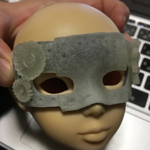 そういえばオビツヘッド用のスチームパンクな仮面を作っていなかったので、SD用と一緒に作ってみました。金属板を貼り合わせたかのような土台に歯車を付けた以前作った仮面と同様のデザインですが、歯車の組み合わせがそれぞれ異なります。オビツヘッド用はSD用に比べて小さいですからね。両方とも同じ色に塗装するので2枚いっぺんに作業していますが、最初からこうすれば数に偏りも起きなかったなあ…。今回のI・Doll SendaiはSD用の仮面が多めになります。