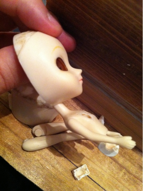 真面目にプーリップをやっている人に見せたらブン殴られそうなひどい改造をします。これは首の角度を変えて固定しているところ。