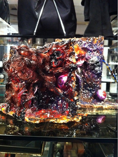 そして、透明・黒・赤の3色のグルーで適当にテクスチャを作ります。グルーガンは手軽・安価にぐちゃぐちゃなテクスチャが作れて便利です。特にカラー付きのを使うと塗装も簡略化できる利点あり。