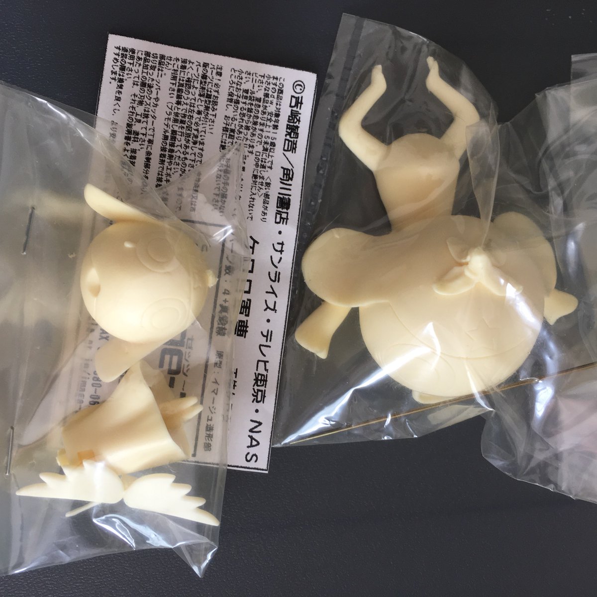 一緒に見つけた、なぜか2セットある「おじゃる丸」の小鬼トリオのガレージキットの状態の良い方を提供します。本当になんで2個買ったんだろう?