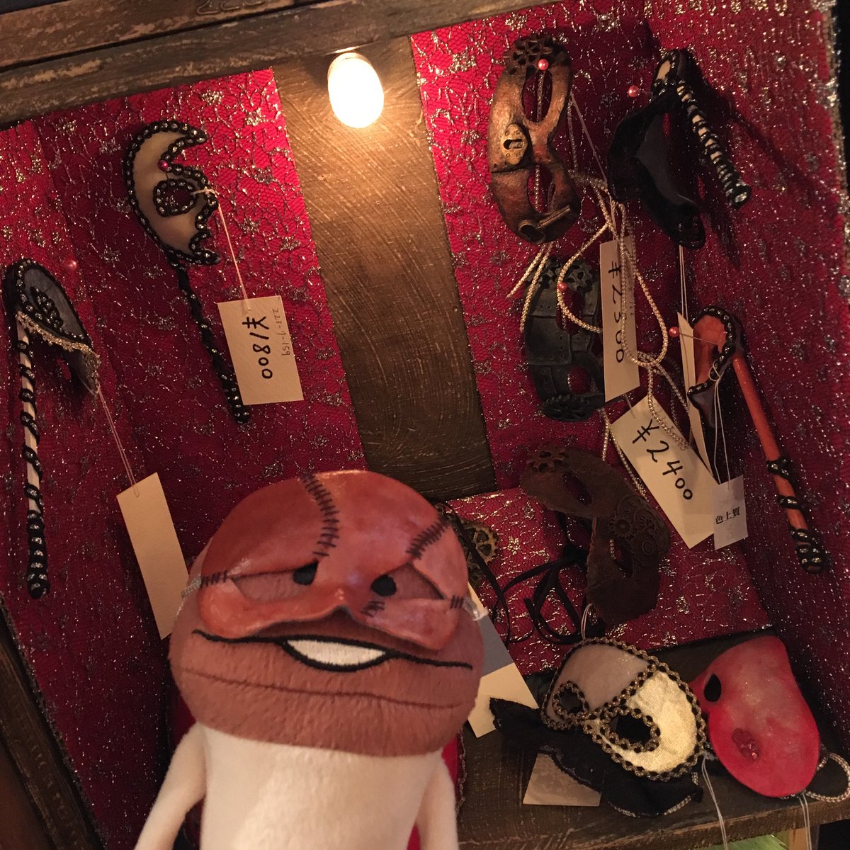 現在ライブ参戦および東京ゲームショウ2017取材のために東京にいます。そこで上京時の定番として西荻窪のアートショップ「ニヒル牛」の展示箱にスーパードルフィー用の仮面を追加納品しました。