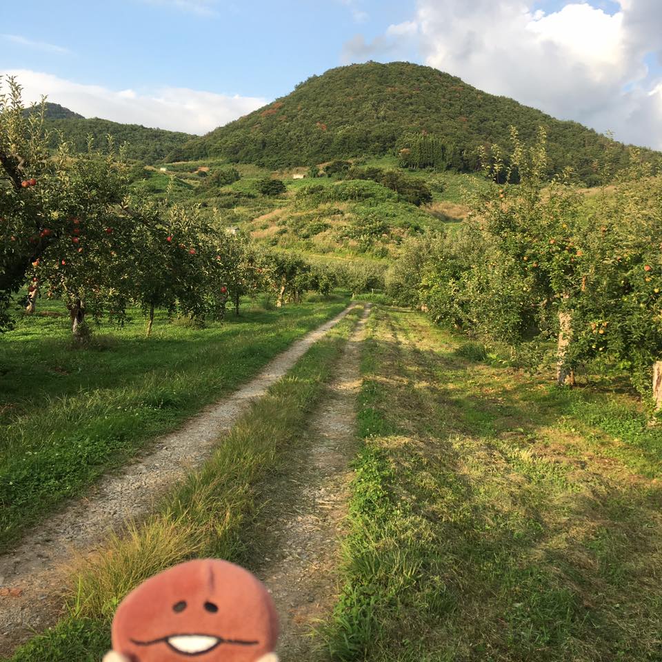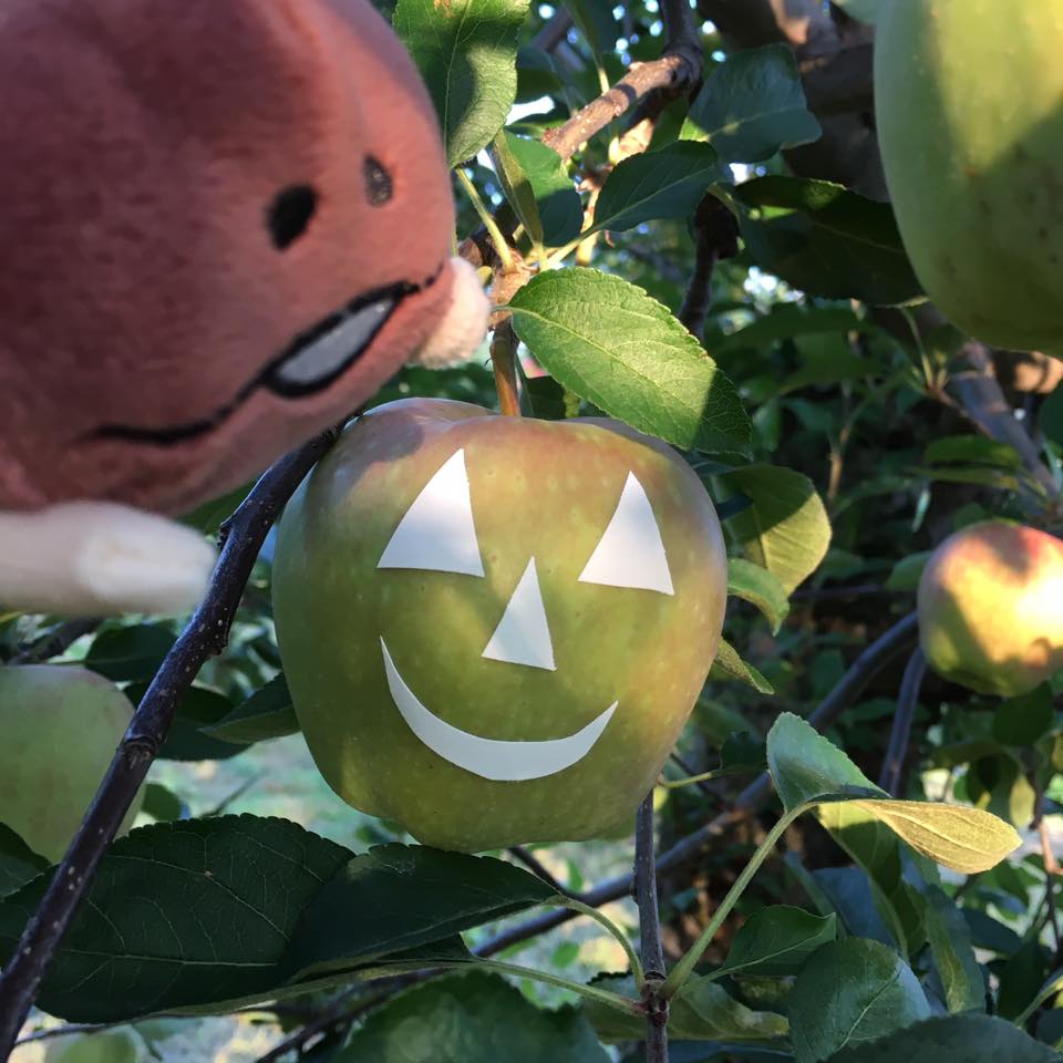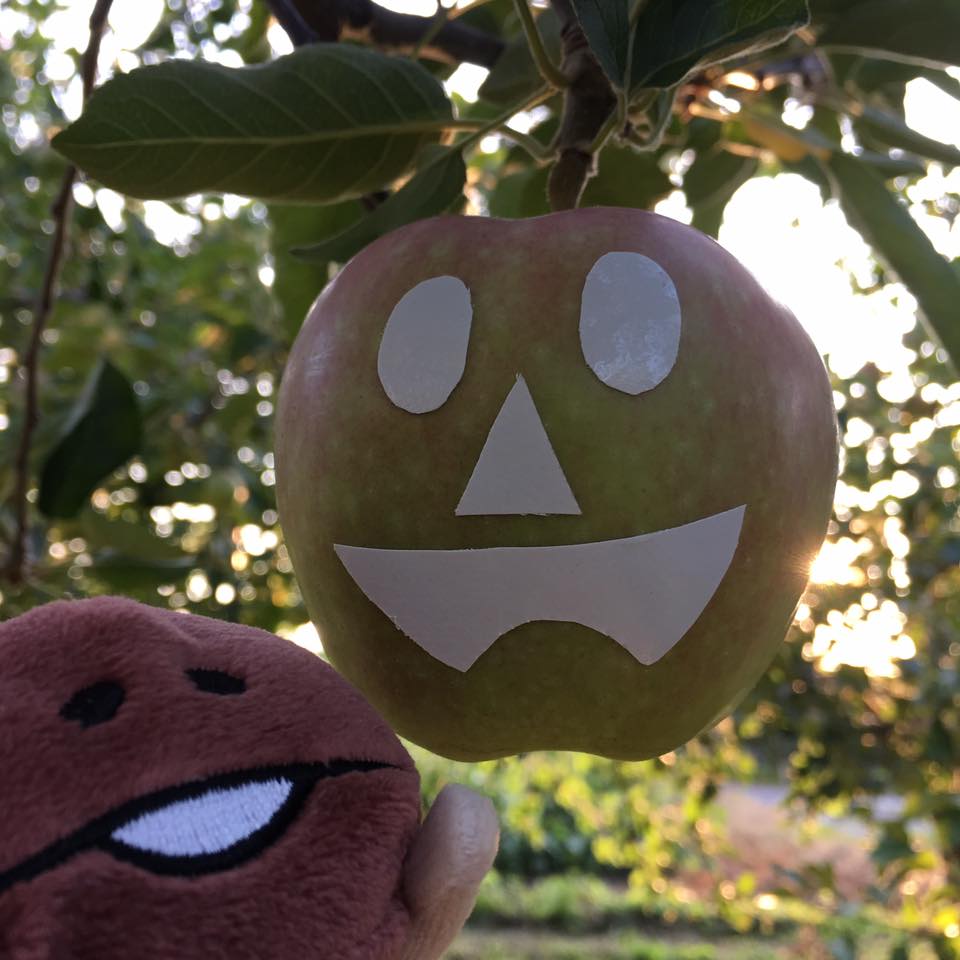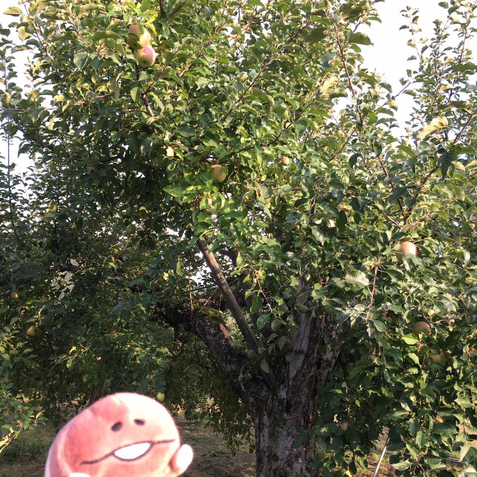 ただこのスターキング、ご覧のとおり”いかにもりんごでございます”という典型的なりんごの形をしていて、鮮やかな色が着くのが長所です。日本のりんごは品種改良によって形が丸くなって着色具合も変わっちゃいましたからね。それに対しこのスターキングは日本にりんごが渡ってきた当時の姿そのままで、誰もがりんごと聞いて思い浮かべる姿をしているのです。色も鮮やかならシールを貼って日焼けさせるのにもってこい。見た目が良いなら食用ではなく鑑賞用として売ることができます。